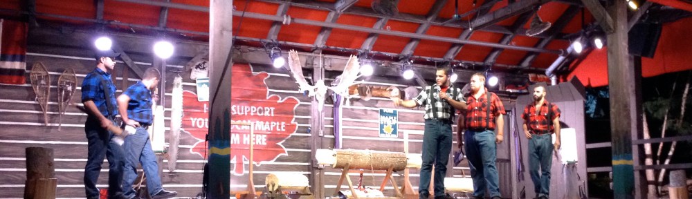 Our next stop is the UK Pavilion for a Chai, and next-door is the Canadian Lumberjack Show! I have tried for a couple of weeks to be here at the right time to get to see them. It is a great show, and very fun! At the close of the show, they said they are going to be available for handshakes and pictures. The kids got a picture with them!